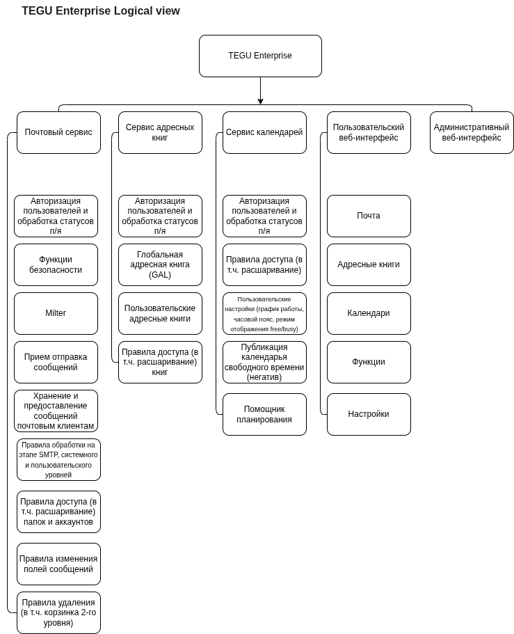Логическое представление сфокусировано на функциональности TEGU Enterprise.
