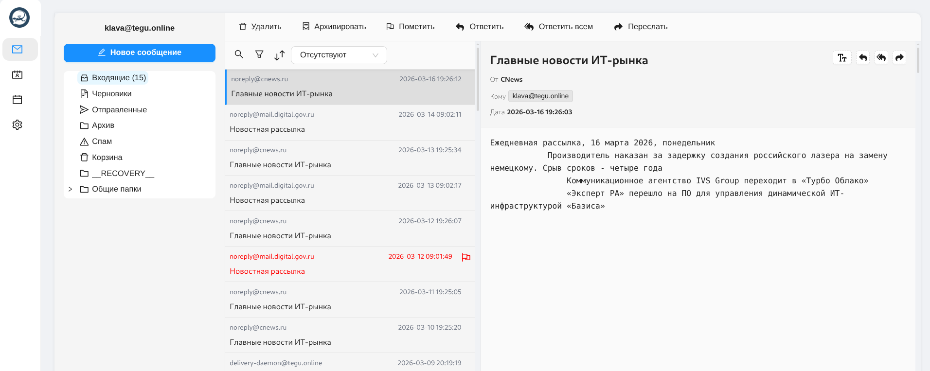 Работа в почтовом клиенте¶
